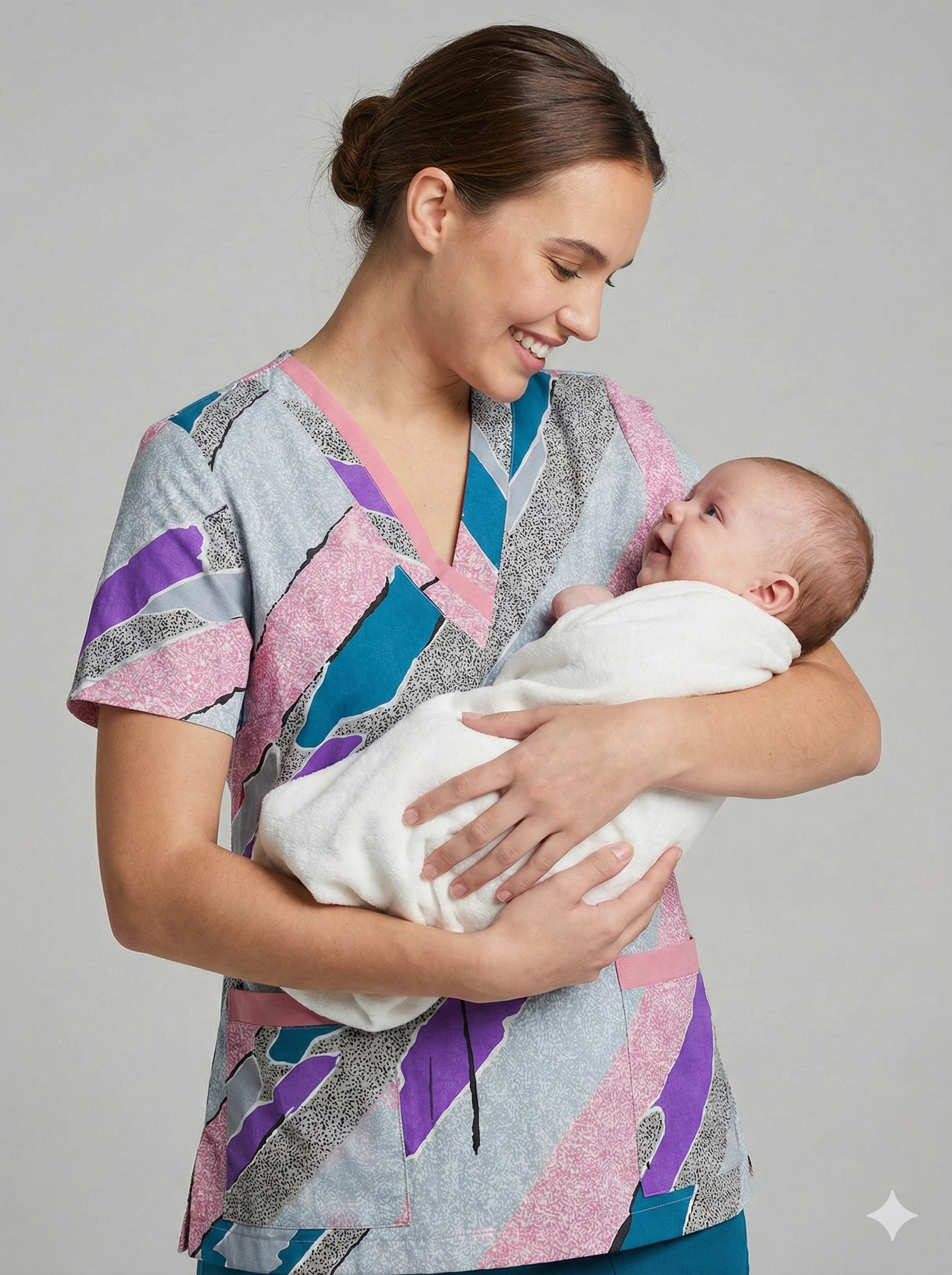 Blusón Escote V clásico con bolsillos dobles y un bolsillo superior. Detalles en tonos rosa que le dan alegría y armonía al diseño.