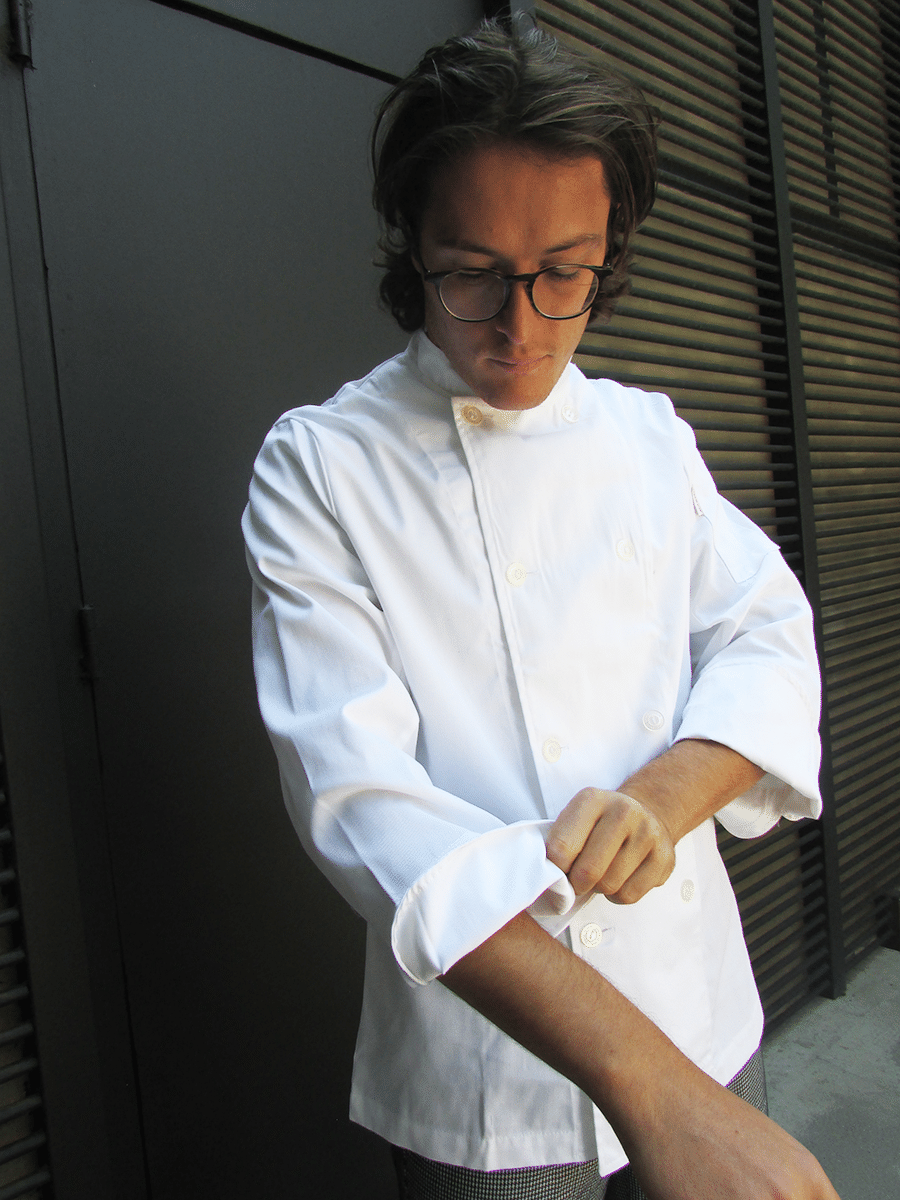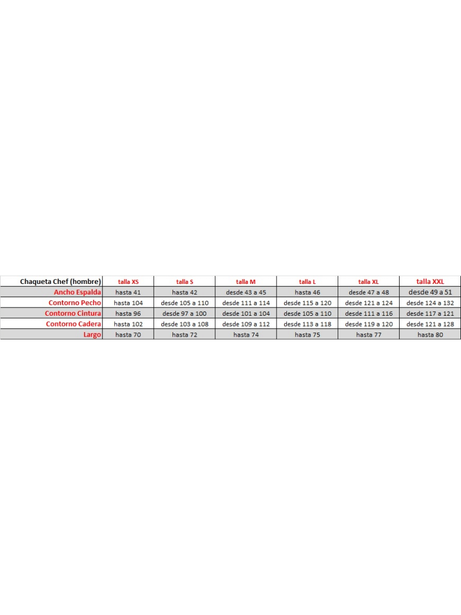 Chaqueta cocina abotonada con doble cruce en el frente. Bolsillo en manga izquierda. Un clásico!!