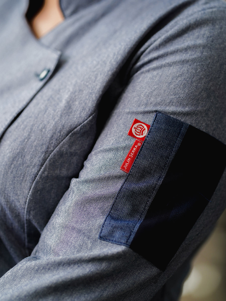 Chaqueta de cocina mujer con escote chef mas rebajado que te permite estar más cómoda y fresca en tu trabajo.