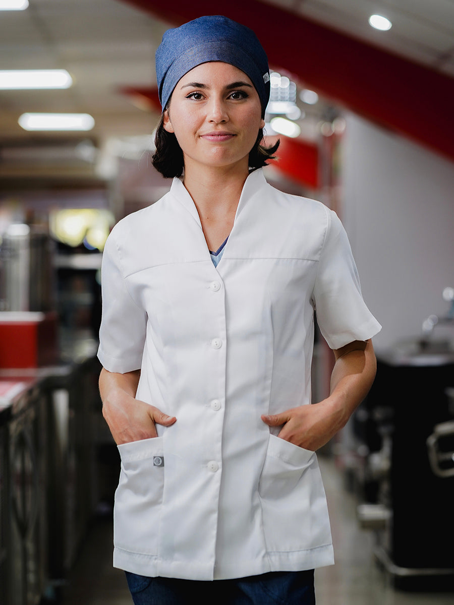 Chaqueta Dominga manga corta en gabardina fina banca.