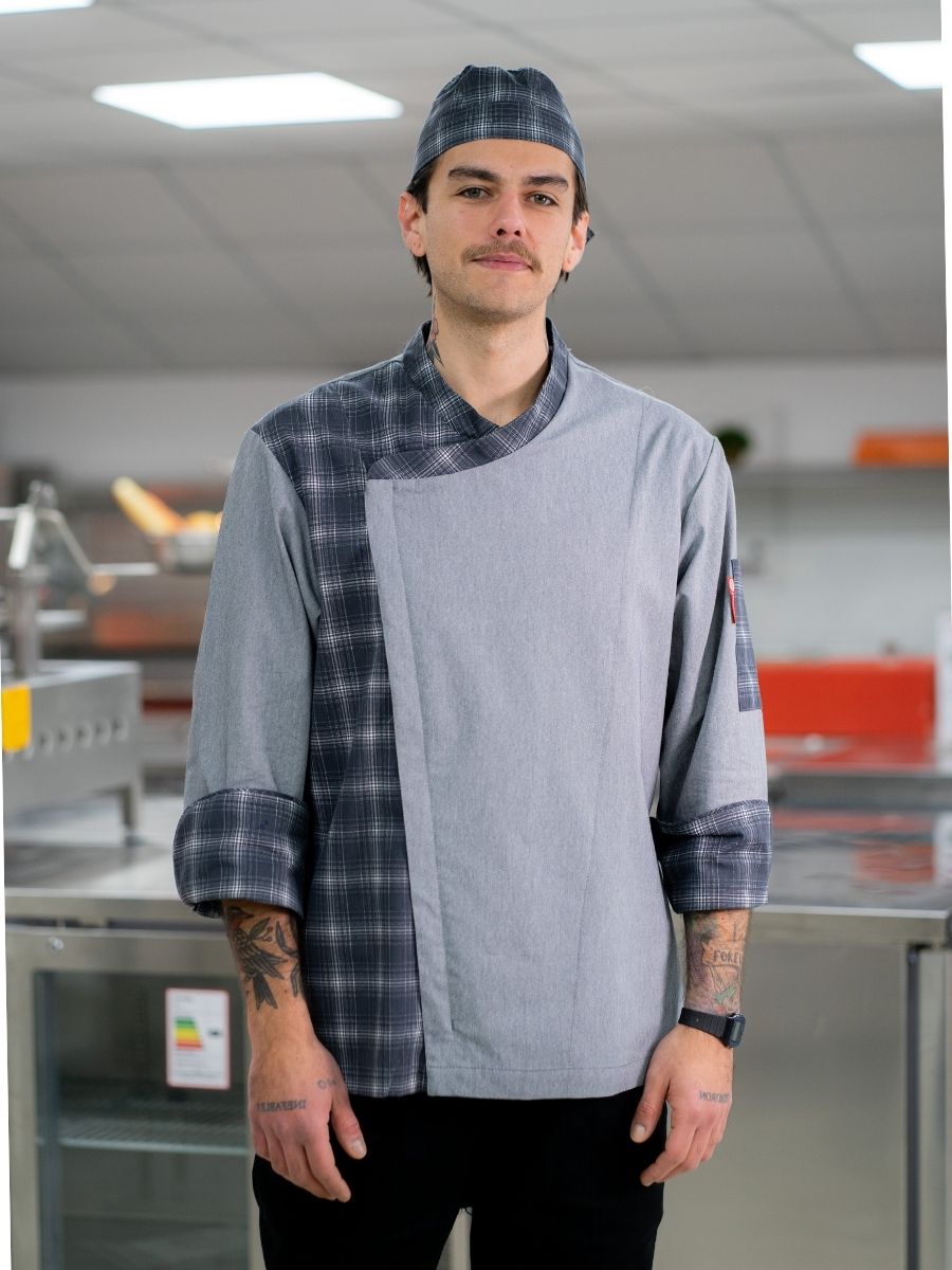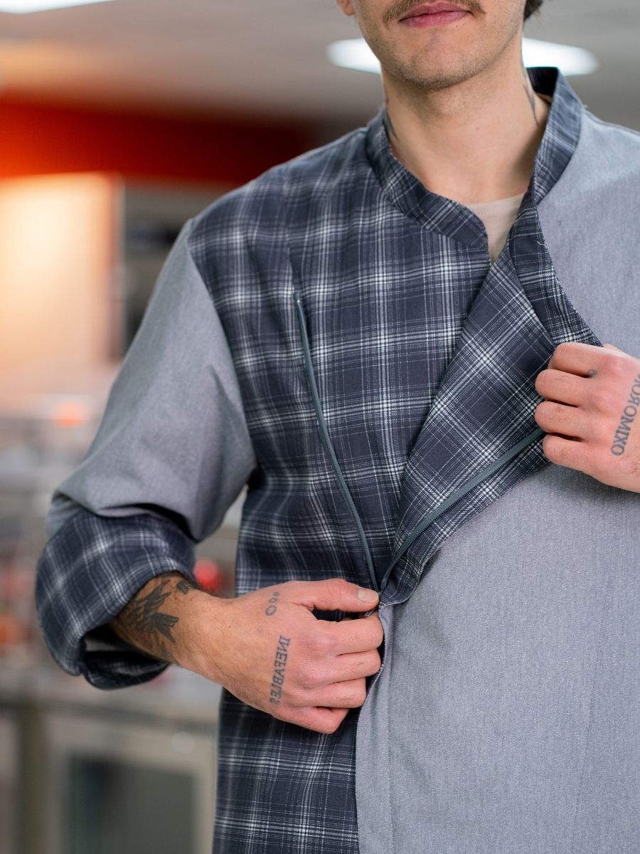 Chaqueta Milcao Hombre gris con cierre y tela escocesa