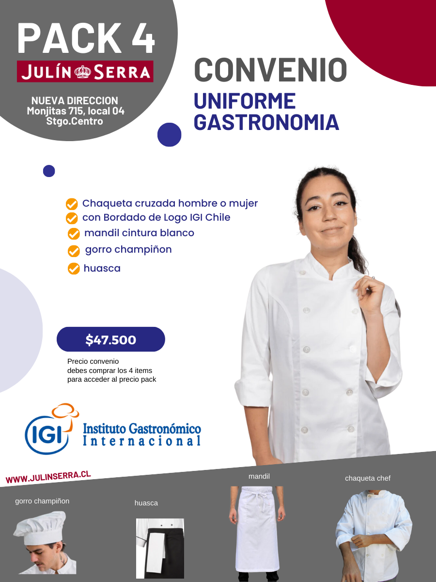 Pack 4 ITEMS Uniforme Gastronomía IGI Chile