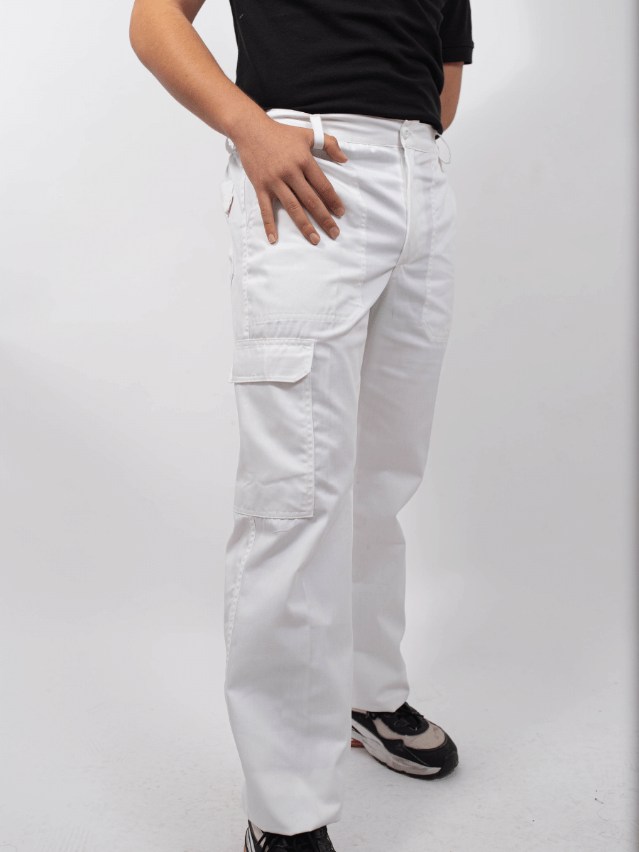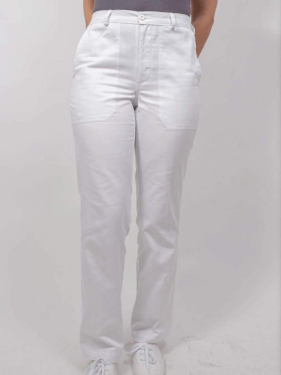 Pantalón unisex en gabardina blanca.