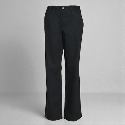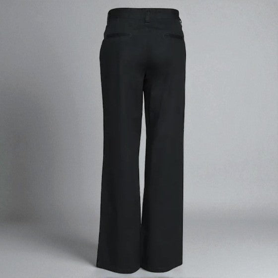 Dos bolsillos clásicos a los costados, pierna lisa, pasadores para cinturón.